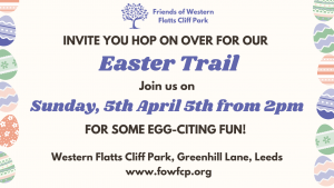 Easter Trail Join Us for our Easter Trail! Friends of Western Flatts Cliff Park invite you to hop along the Easter Trail for fun, treats, and adventure with family and friends! Get ready for a fun-filled day out at our in-person Easter Trail. It’s the perfect chance to enjoy the fresh air, explore exciting spots, and make memories with family and friends. Whether you’re hunting for treats or just soaking up the festive vibes, this event promises loads of fun and surprises. Don’t miss out on the joy and community spirit – come along and be part of the Easter Trail adventure!